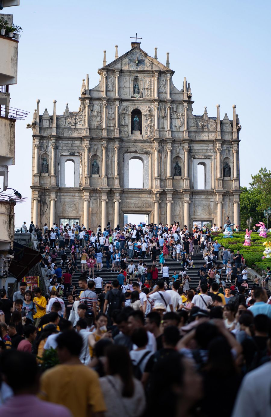 Tourists visit the Ruins of St. Paul's in south China's Macao Special Administrative Region, on Oct 8, 2019. (Xinhua/Cheong Kam Ka)