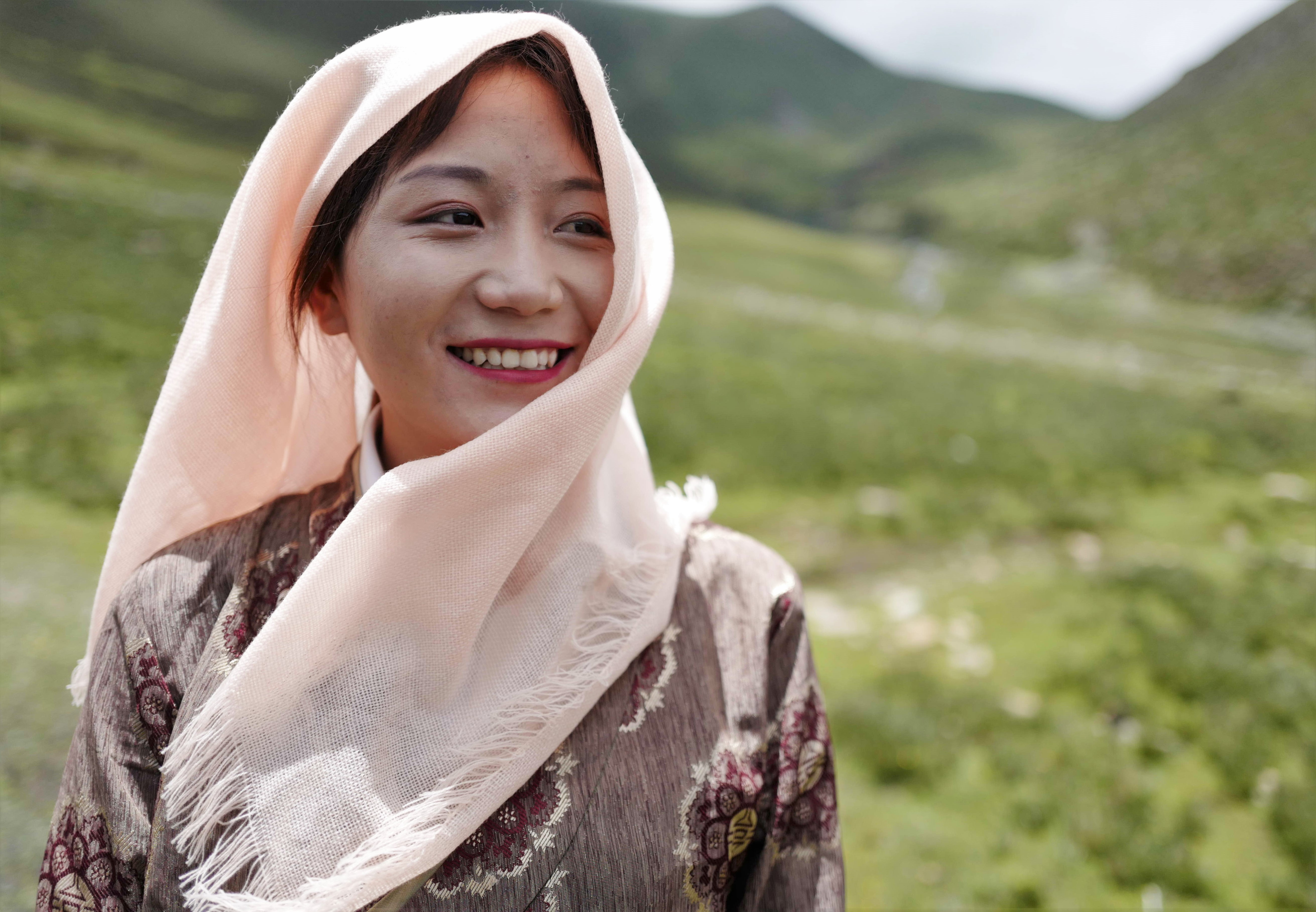 Jianre Yixi stands in her family's pasture in southwest China's Tibet Autonomous Region, July 13, 2019. (Xinhua/Purbu Zhaxi)