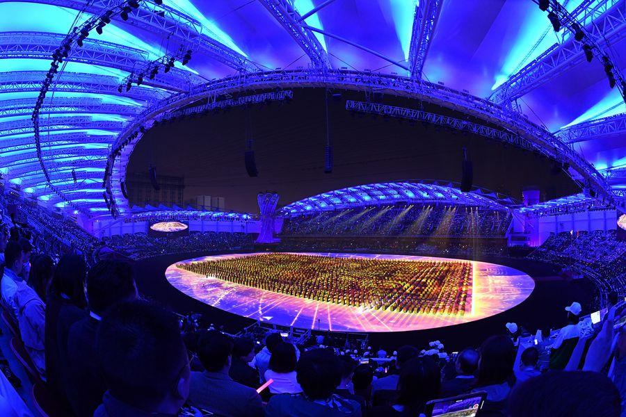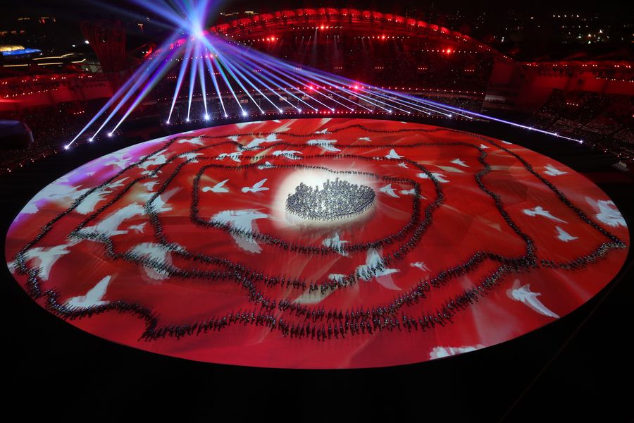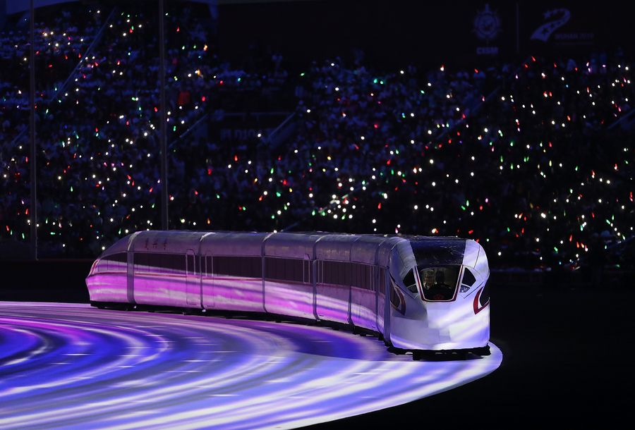 Photo taken on Oct. 18, 2019 shows the performance during the opening ceremony of the 7th International Military Sports Council (CISM) Military World Games in Wuhan, capital of central China's Hubei Province.(Xinhua/Chen Yehua)