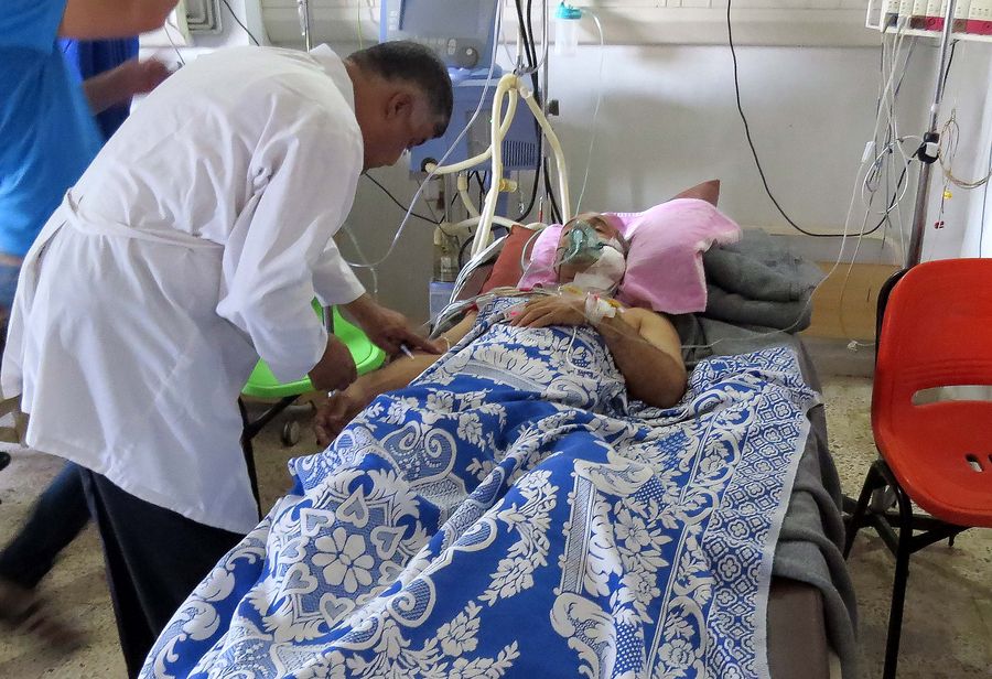 A man receives medical treatment at a hospital after getting wounded by the Turkish shelling in Qamishli, Syria, on Oct. 12, 2019. (Xinhua)