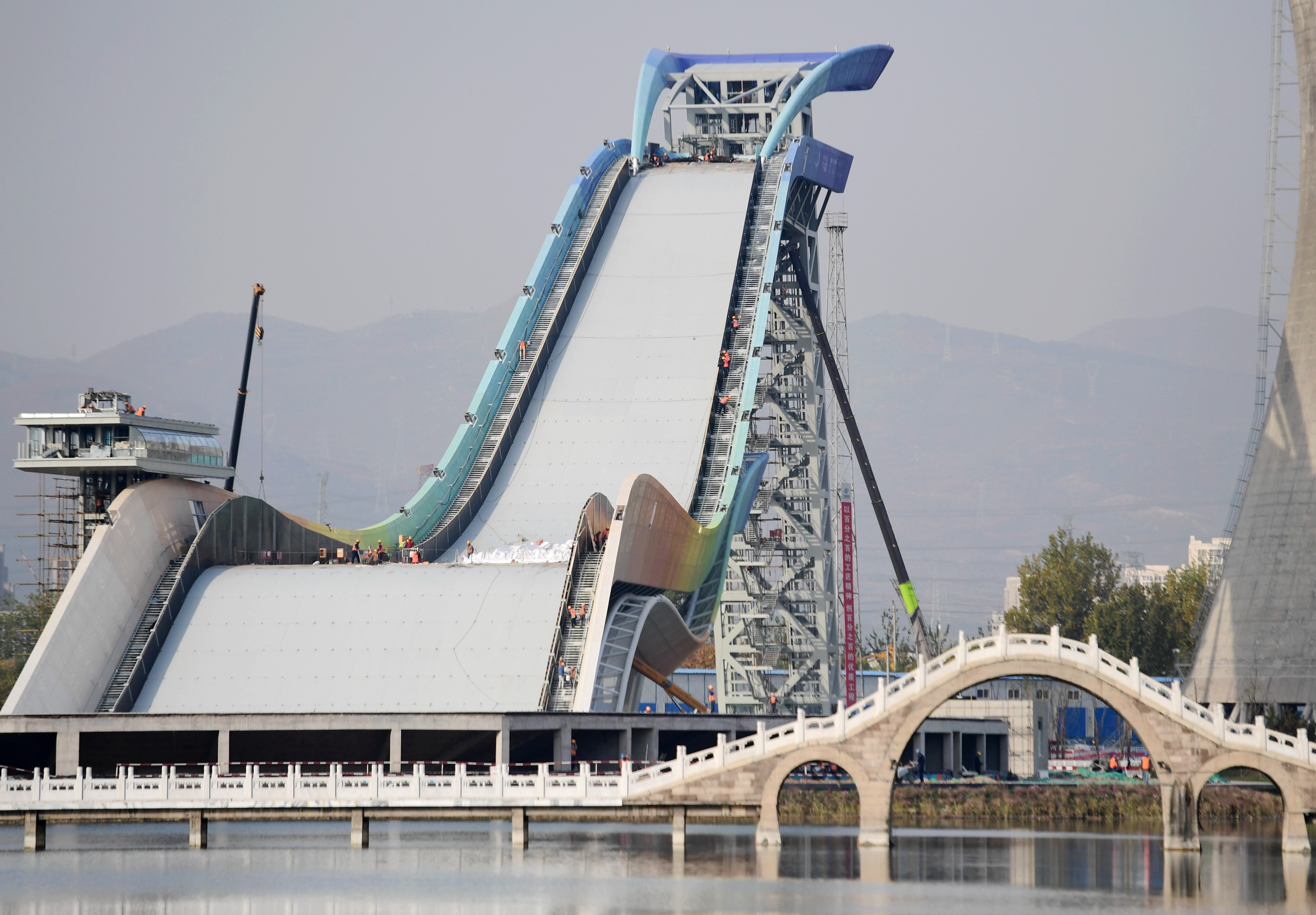 The picture taken on Nov. 1, 2019 shows the general view of Big Air Shougang, the venue for Beijing 2022 Winter Olympic Games in Beijing, capital of China. (Xinhua/Zhang Chenlin)