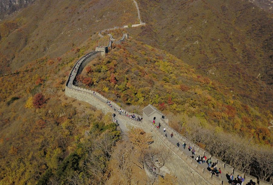 Tourists visit the Mutianyu Great Wall in Beijing, Nov. 4, 2019. (Xinhua/Chen Zhonghao)■