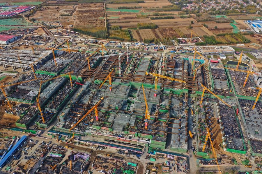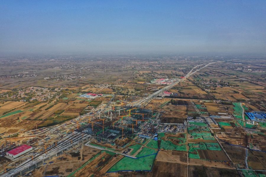 Aerial photo taken on Nov. 7, 2019 shows the Xiongan Station of Beijing-Xiongan inter-city railway under construction in Xiongan New Area, north China's Hebei Province. (Xinhua/Xing Guangli)