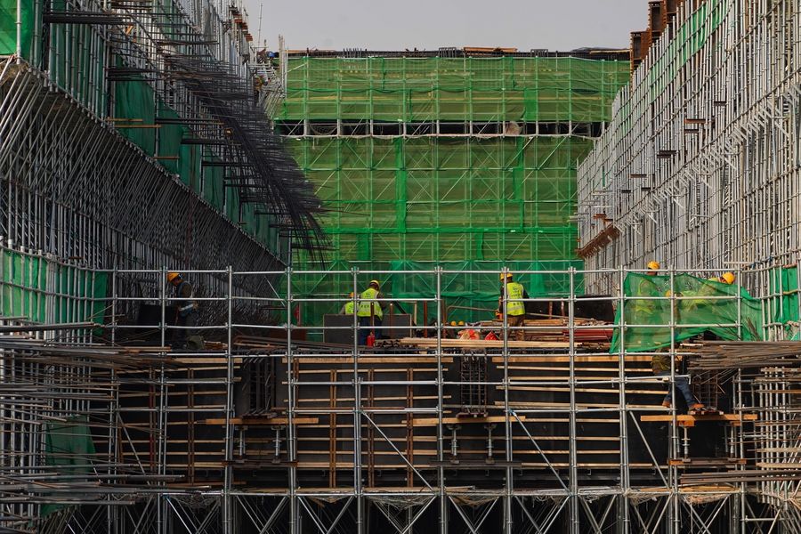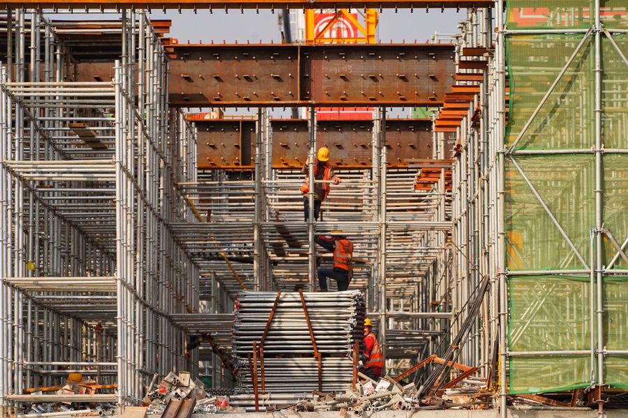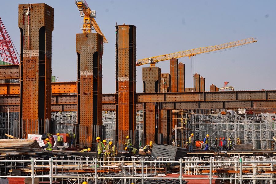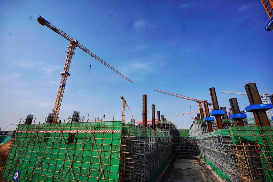 People work at the construction site of Xiongan Station of Beijing-Xiongan inter-city railway in Xiongan New Area, north China's Hebei Province, Nov. 7, 2019. (Xinhua/Xing Guangli)