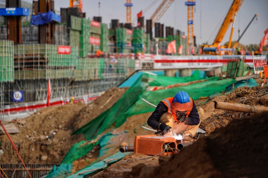 A man works at the construction site of Xiongan Station of Beijing-Xiongan inter-city railway in Xiongan New Area, north China's Hebei Province, Nov. 7, 2019. (Xinhua/Xing Guangli)