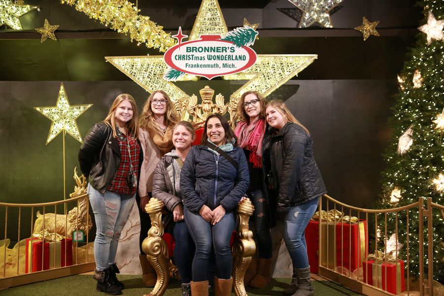 Customers pose for photos at Bronner's Christmas Wonderland, a retail store that promotes itself as "the world's largest Christmas store", in Frankenmuth of Michigan state, the United States, Nov. 16, 2019. (Xinhua/Wang Ping)