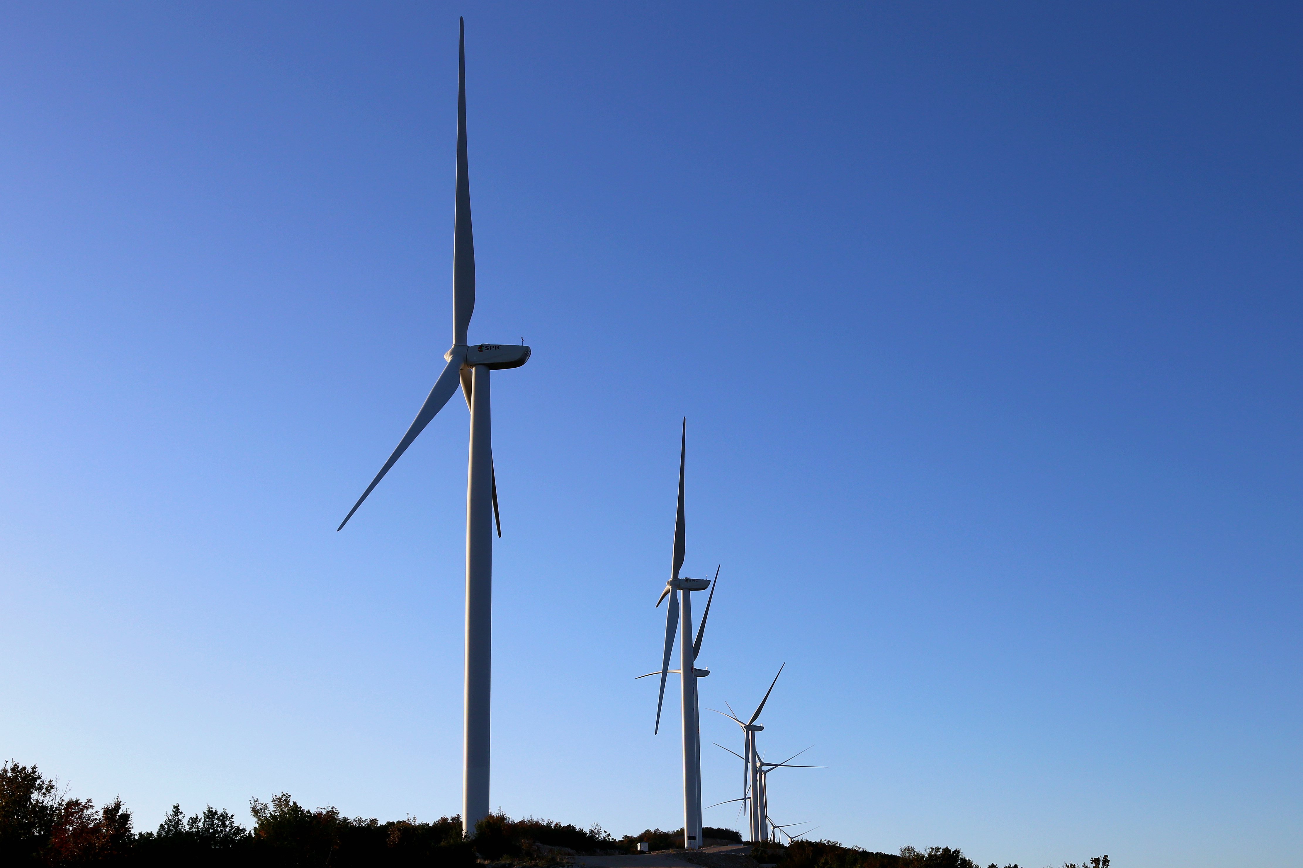 Photo taken on Nov. 18, 2019 show a view of the Mozura Wind Park in southern Montenegro. (Xinhua/Shi Zhongyu)