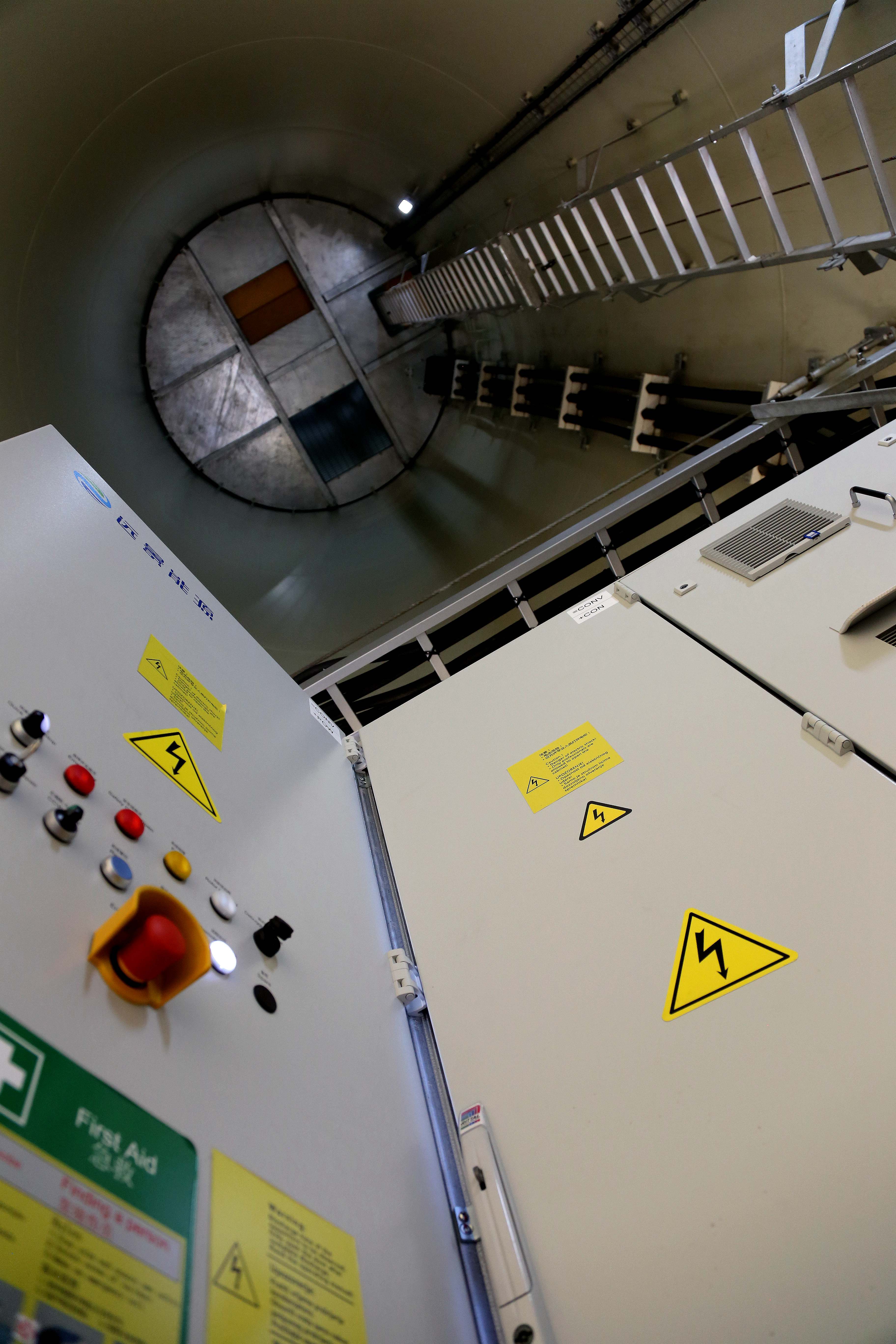Photo taken on Nov. 18, 2019 shows the interior of a wind mill of the Mozura Wind Park in southern Montenegro. (Xinhua/Shi Zhongyu)