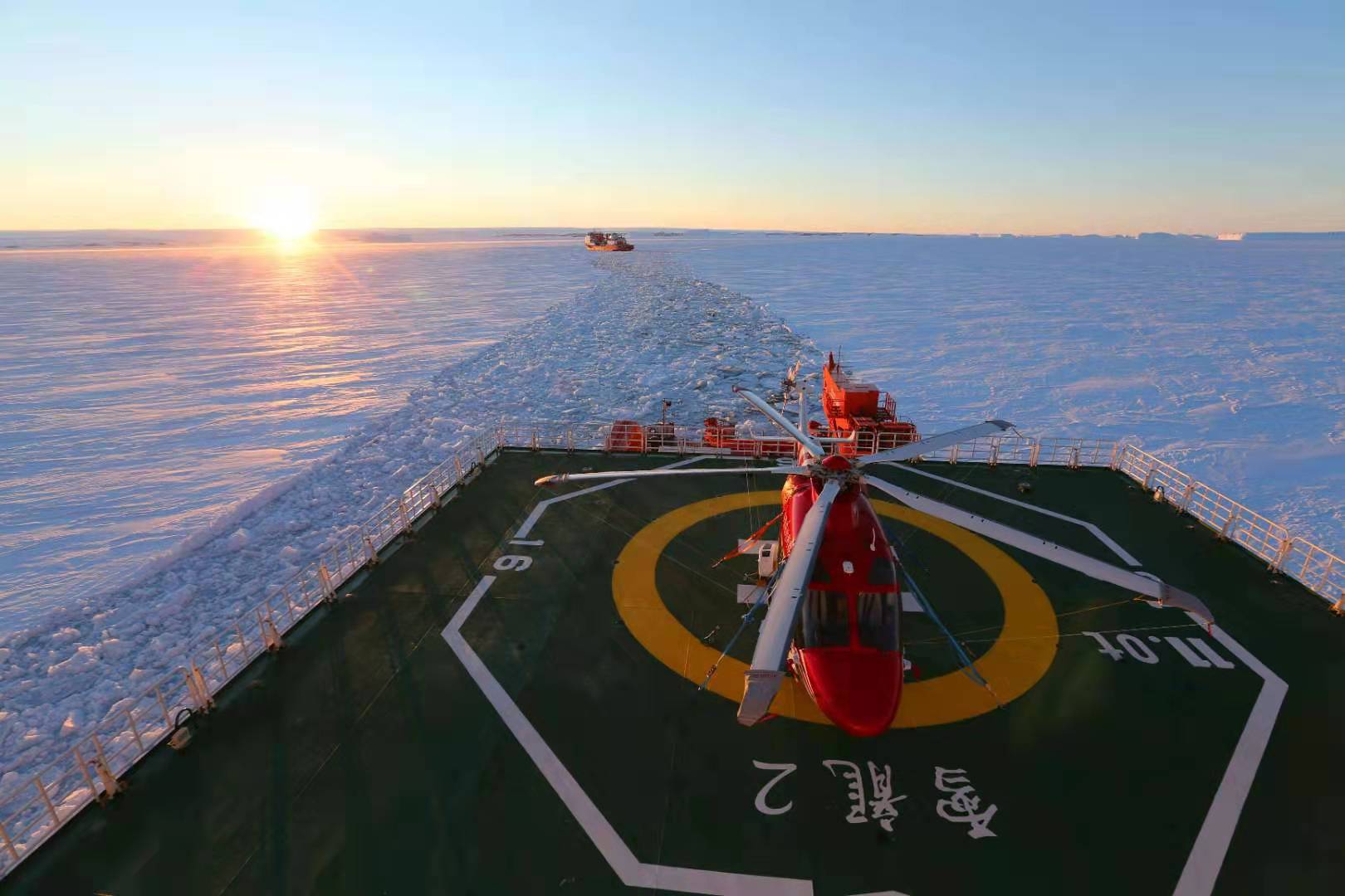 Icebreaker Xuelong also joined the expedition, making it the first time that two polar icebreakers work together on China's Antarctic expedition.