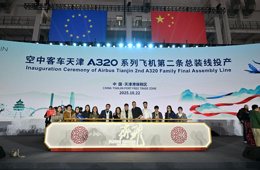TIANJIN, Oct. 22 (Xinhua) -- Airbus on Wednesday inaugurated its latest Final Assembly Line (FAL) for A320 family aircraft in the northern Chinese port city of Tianjin, the second of its kind in both China and Asia as a whole.