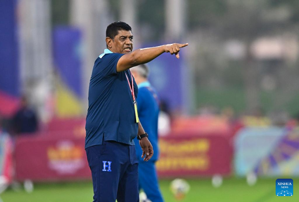Head coach of Honduras Jose Canales reacts during during the group H match between Brazil and Honduras of FIFA U17 World cup Qatar 2025 in Doha, Qatar, on Nov. 4, 2025. (Photo by Nikku/Xinhua)
