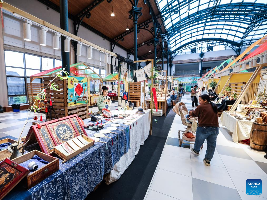 Tourists visit an artisans' fair during an internet life carnival at the Puyuan Fashion Resort in Tongxiang City of Jiaxing, east China's Zhejiang Province, Nov. 5, 2025. The internet life carnival kicked off here on Wednesday and will last till Nov. 9. The event integrates technology exhibition, consumer goods and entertainment products into the resorts' fashion lifestyle industry, allowing visitors to experience various scenarios where digital civilization enhances quality of life. (Xinhua/Xu Yu)
