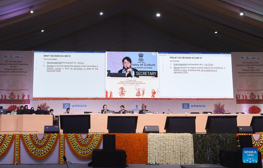 NEW DELHI, Dec. 12 (Xinhua) -- The 20th regular session of the UNESCO Intergovernmental Committee for the Safeguarding of the Intangible Cultural Heritage decided here on Friday to hold its 21st session in Xiamen, China, from Nov. 30 to Dec. 5, 2026.