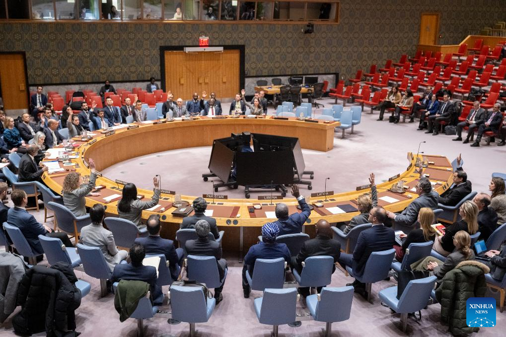 Representatives vote on a draft resolution during a Security Council meeting at the UN headquarters in New York, on Jan. 30, 2026. (Manuel Elias/UN Photo/Handout via Xinhua)