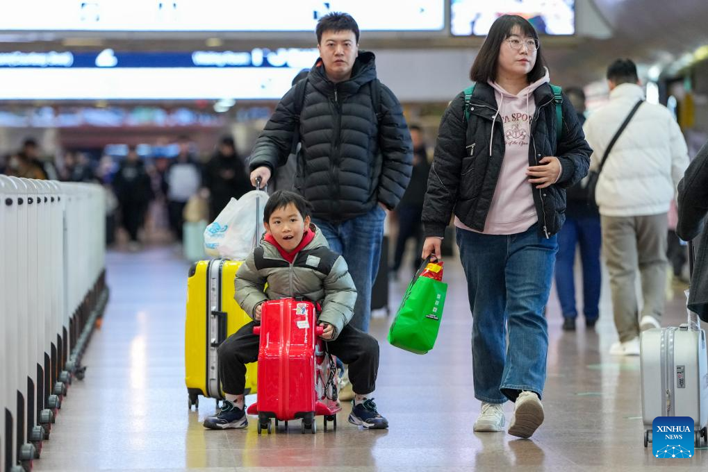 Passengers are seen at Beijing West Railway Station in Beijing, capital of China, Feb. 2, 2026.