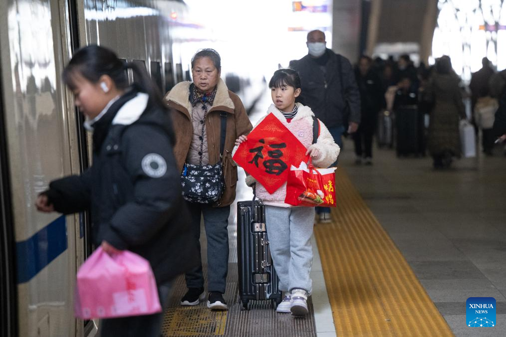 BEIJING, Feb. 2 (Xinhua) -- At 12:40 a.m. Monday, train K4069 pulled out of Beijing West Railway Station, becoming the first passenger train to depart from Beijing as part of the 2026 Spring Festival travel rush. On it were travelers either heading home or setting out on leisure travel, as the country's annual tale of movement and reunion began to unfold.