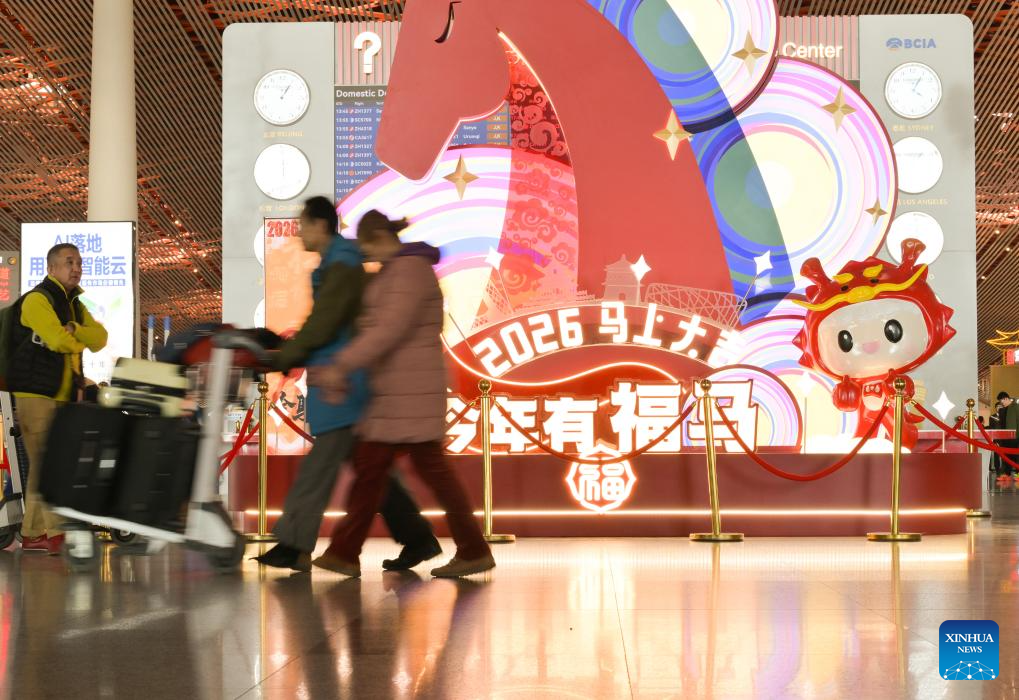 Passengers are seen at Beijing Capital International Airport in Beijing, capital of China, Feb. 2, 2026.