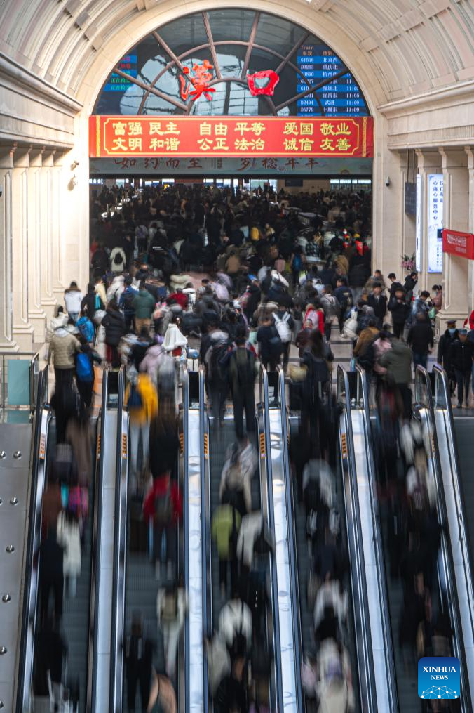 Passengers are seen at Hankou Railway Station in Wuhan, central China's Hubei Province, Feb. 2, 2026.