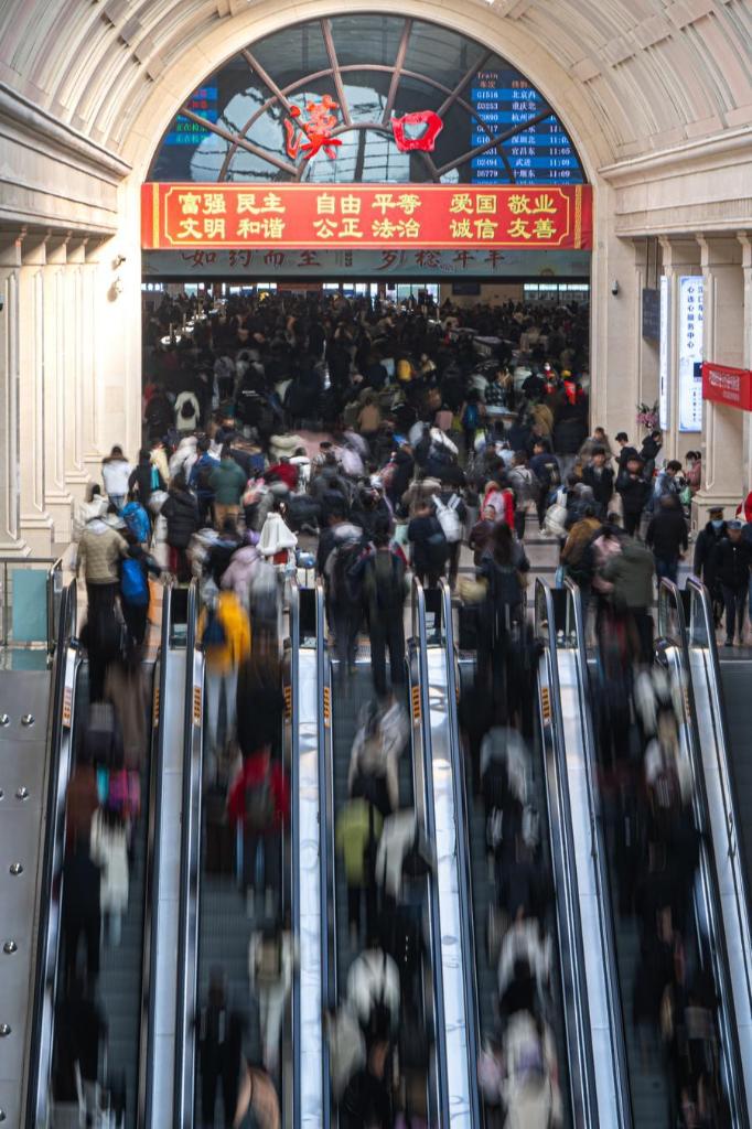 Passengers are seen at Hankou Railway Station in Wuhan, central China's Hubei Province, Feb. 2, 2026. (Xinhua/Xiao Yijiu)