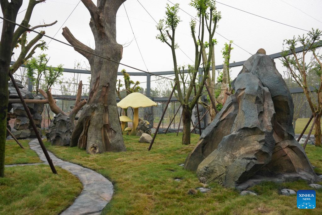 The Mianyang giant panda base, covering an area of about 120 hectares, is located at an ecological park in Mianyang City. The base boasts more than 50 sets of giant panda enclosures with beautiful environment and meeting the requirements of giant panda breeding. (Xinhua/Xu Bingjie)