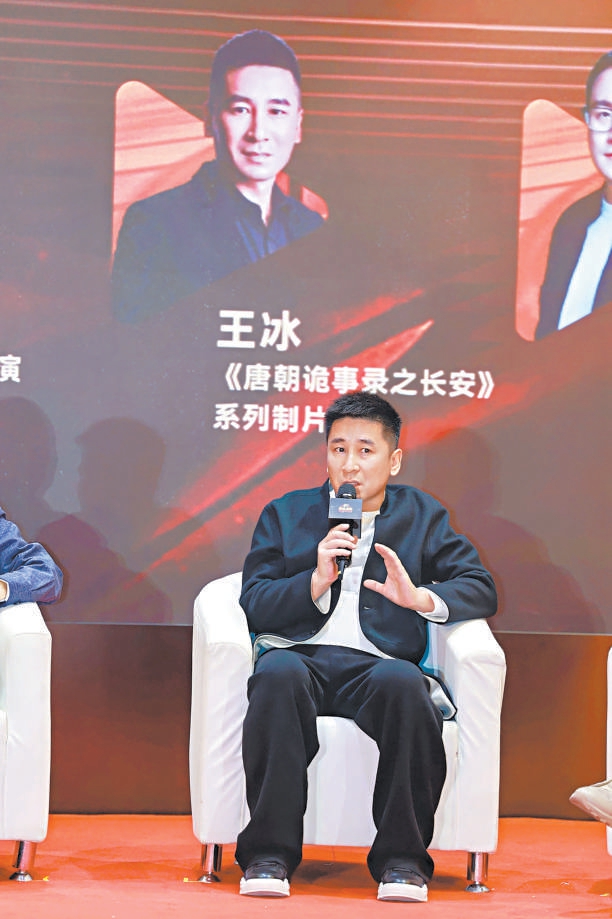 “《唐朝诡事录》系列剧集如何在保持‘诡事’内核的同时,避免观众审美疲劳,实现系列的新突破?”面对主持人的提问,《唐朝诡事录》系列制片人王冰道出了该系列持续受到年轻观众喜爱的秘诀。“《唐朝诡事录》好看的不仅有云诡波谲的案件,更有对人心、人性的深刻探讨。另外,我们将多件国宝级文物融入剧情,推动了传统文化创新表达。”