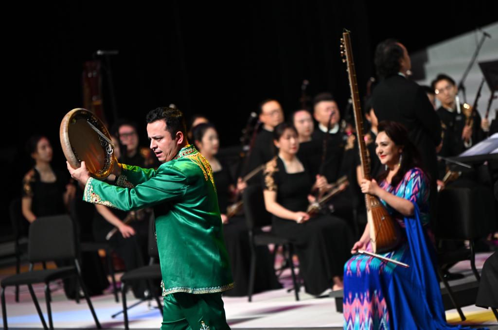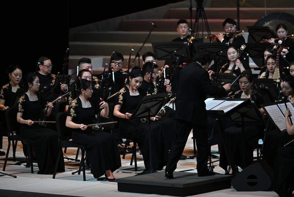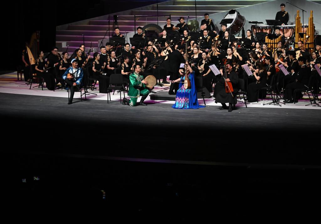 10月16日,乐团在第十一届丝绸之路国际艺术节开幕式上表演民族管弦乐《梦起长安》。