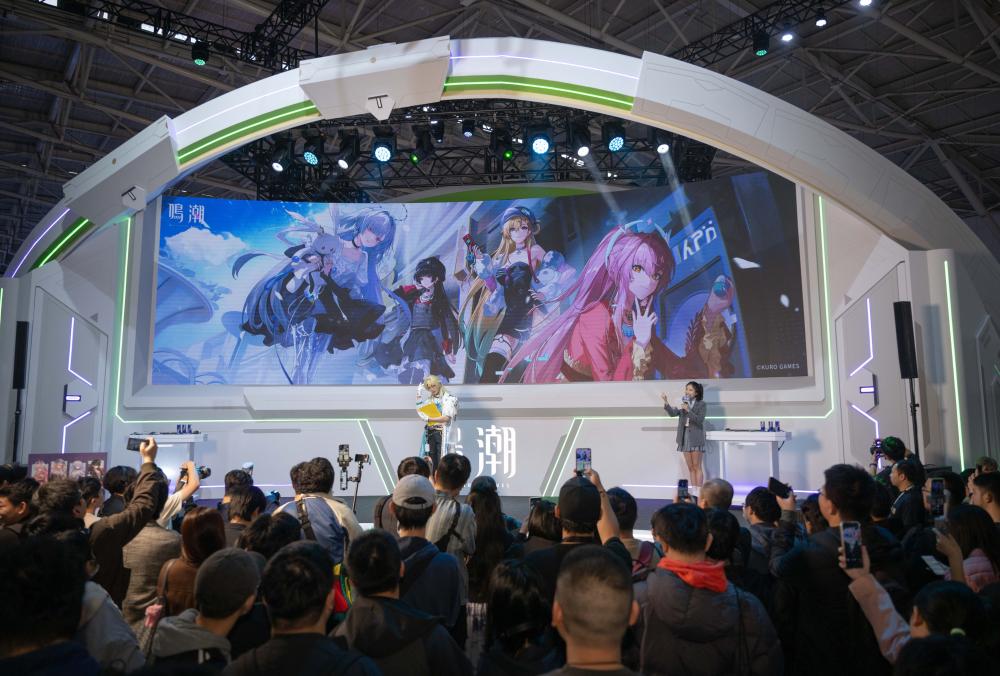据了解,《鸣潮》以东方美学为基调,融入传统建筑、水墨意境与侠客精神,获得许多台湾年轻人喜爱。在现场,购买《鸣潮》游戏人物周边商品的队伍蜿蜒数圈。《鸣潮》展台工作人员告诉记者,展台单日参观人数初估超过2500人次,“台湾玩家非常热情,展场互动气氛很赞”。