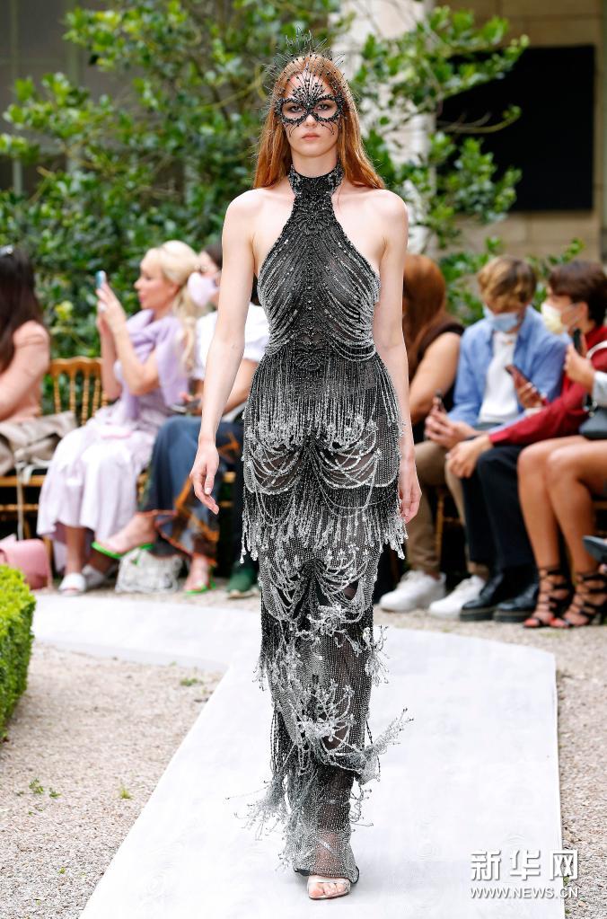 7月7日,模特在法國(guó)巴黎高級(jí)定制時(shí)裝周上展示Zuhair Murad品牌2021/2022秋冬新品。