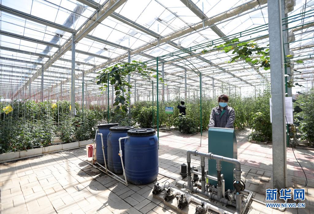 河北省饒陽(yáng)縣一家現(xiàn)代農(nóng)業(yè)示范園區(qū)工人在智慧溫室操作水肥一體化設(shè)施(2020年4月8日攝)。近年來,河北省饒陽(yáng)縣在推進(jìn)農(nóng)業(yè)供給側(cè)結(jié)構(gòu)性改革中,積極優(yōu)化農(nóng)業(yè)產(chǎn)業(yè)結(jié)構(gòu),依托現(xiàn)代農(nóng)業(yè)示范園區(qū)建設(shè),將自動(dòng)滴灌、遠(yuǎn)程數(shù)據(jù)采集、智能電力溫控等先進(jìn)“工業(yè)化”技術(shù)應(yīng)用于農(nóng)業(yè)生產(chǎn)。