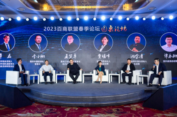 4月10日下午,在2023酱酒之心举办期间,由云酒传媒主办,贵酒酱酒集团赞助承办的“海纳百川 商行天下”——百商联盟2023春季论坛在成都世外桃源酒店举行。