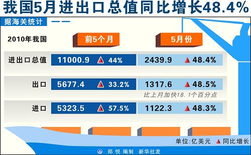 5月進出口總值同比增長48.4%
