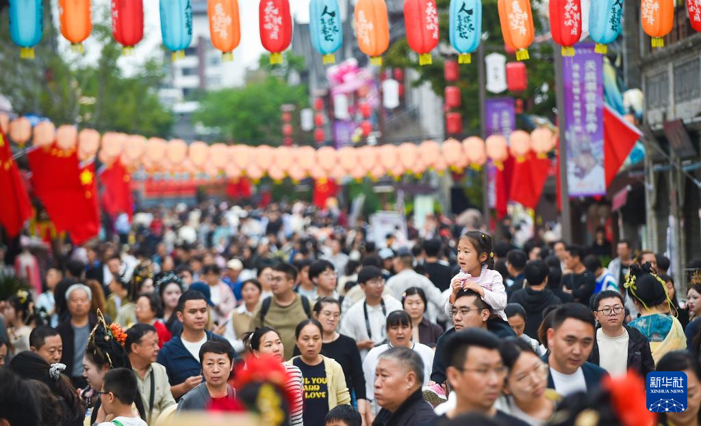 国庆中秋假期,各地景区游人如织。市民高涨的出游热情为文旅消费市场注入活力。这是10月2日,游客在河南省洛阳市老城区历史文化街区洛邑古城景区休闲游玩。