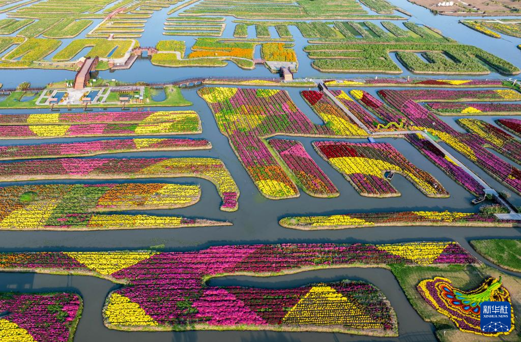 10月11日拍摄的江苏省兴化市千垛景区菊花盛开的美景(无人机照片)。