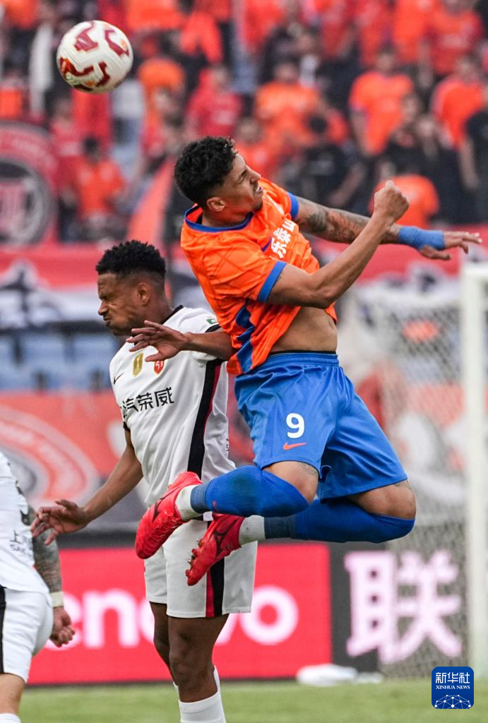 10月26日,山东泰山队球员克雷桑(右)在比赛中争顶。
