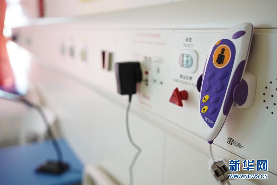 安心、溫馨,這是記者對病房的第一印象。一間病房設(shè)置6張床位和一個衛(wèi)生間,病床分兩排,每張床配有一把椅子、一個床頭柜和一張床上桌,床上鋪蓋一套淺色碎花寢具,床頭背靠的墻面上配備各類醫(yī)用檢測儀器,病房內(nèi)還有智能生態(tài)儀器,方便醫(yī)護(hù)人員測試病患情況。