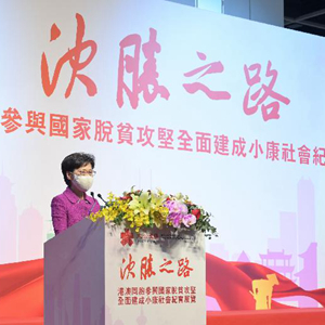 林鄭月娥說,本次展覽展示了不少香港各界參與國家脫貧攻堅戰的故事,記錄了香港同胞如何為國家獻出力量和經驗,相信香港市民參觀后都會對國家的成就和香港的貢獻感到自豪。