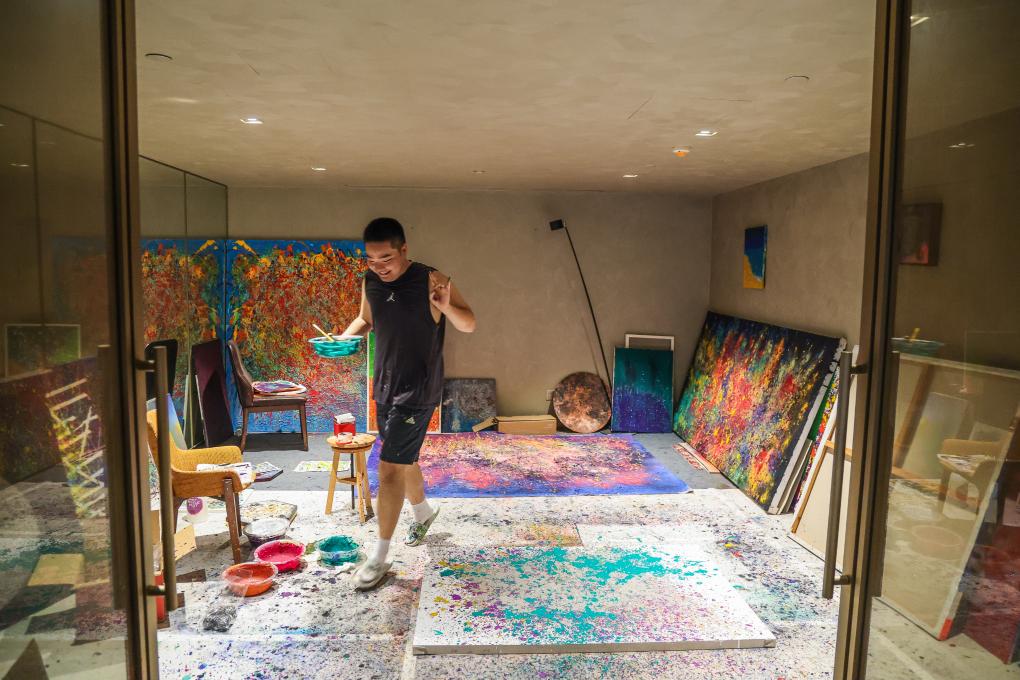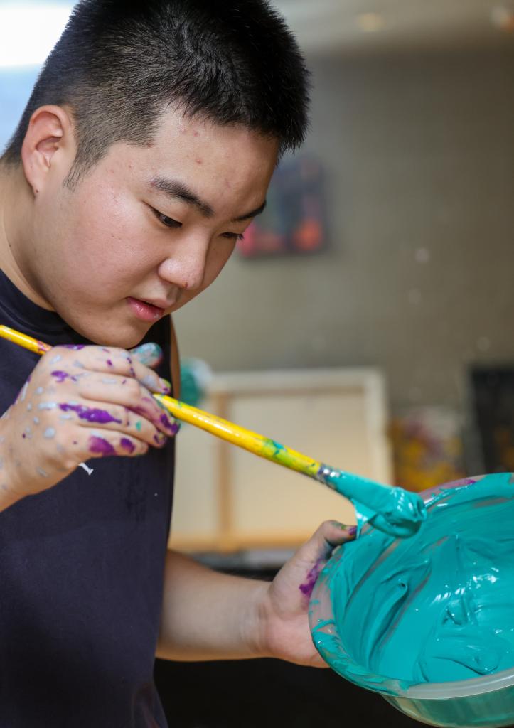 为帮他康复,父母尝试了乒乓球、轮滑、音乐等多种训练。美术课上,王剑书展现出对色彩的敏感,他选用的颜色看似大胆碰撞,搭配在一起却格外和谐舒适,充满灵动创意。老师将这个发现告诉王剑书的母亲,建议着重培养他的艺术能力。