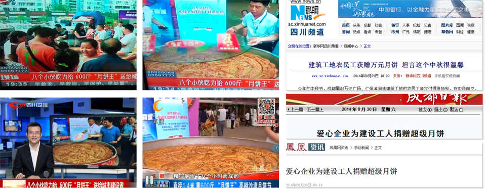 11:30許,在仁恒濱河灣建筑工地活動板房前,諾大的月餅已經擺放在農民工兄弟代表面前。“我早就聽說你們要來給我們送月餅,但是沒想到這個月餅居然這么大!”來自廣西的小姚不禁感嘆道。據記者了解,小姚雖然今年只有29歲,但是已經做建筑工人快10年了。2011年帶女兒一起來到成都,足足已有三年沒有和家人一起過中秋節了。