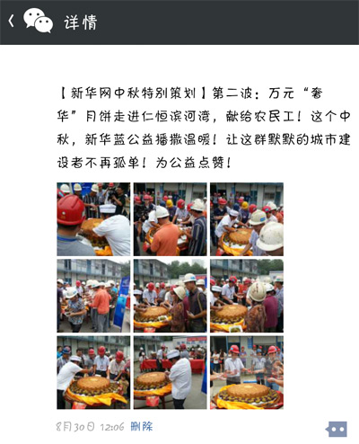 新華藍公益中秋獻厚禮 建筑工地農民工獲贈萬元月餅