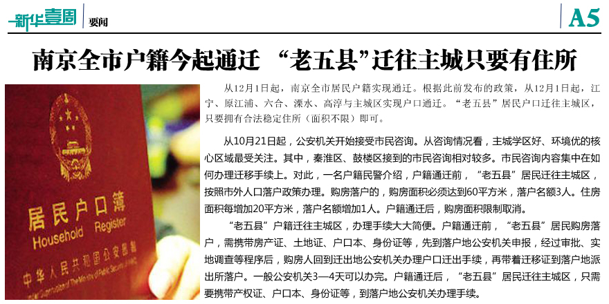 南京全市戶籍今起通遷