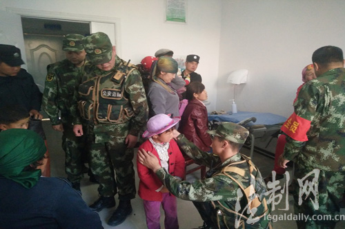 圖為邊防官兵在詢(xún)問(wèn)群眾受傷情況