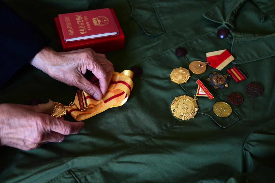 周智夫一生獲得的榮譽章。新華社記者 張永進 攝