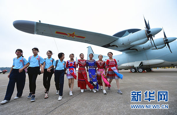 藍天春蕾女童在航展現(xiàn)場參觀(11月10日攝)。新華社發(fā)(陳藝 攝)