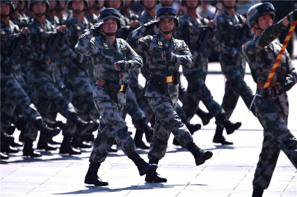 ????2015年9月3日,中國人民抗日戰爭暨世界反法西斯戰爭勝利70周年紀念大會在北京隆重舉行。這是徒步方隊通過天安門廣場。新華社記者 龐興雷 攝