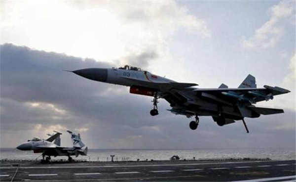 ????資料照片:殲15艦載戰斗機準備在遼寧艦上著艦