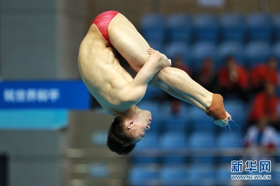 10月25日,謝思埸在比賽中。當(dāng)日,在武漢舉行的第七屆世界軍人運(yùn)動(dòng)會(huì)跳水項(xiàng)目男子3米跳板決賽中,中國選手謝思埸以556.75分的成績奪得冠軍,中國選手王宗源以502.90分的成績獲亞軍。新華社記者 劉續(xù) 攝
