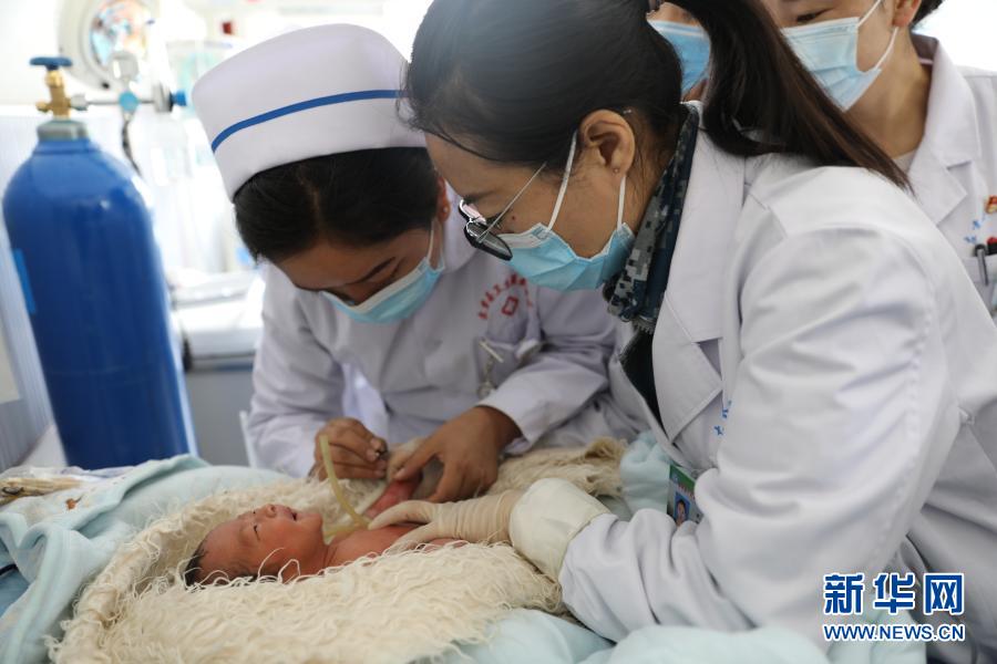 在新生兒病房,空軍特色醫學中心援藏醫療隊隊員(右)帶教左貢縣人民醫院醫護人員(左)實施靜脈穿刺(7月17日攝)。新華社發(張洪濤 攝)