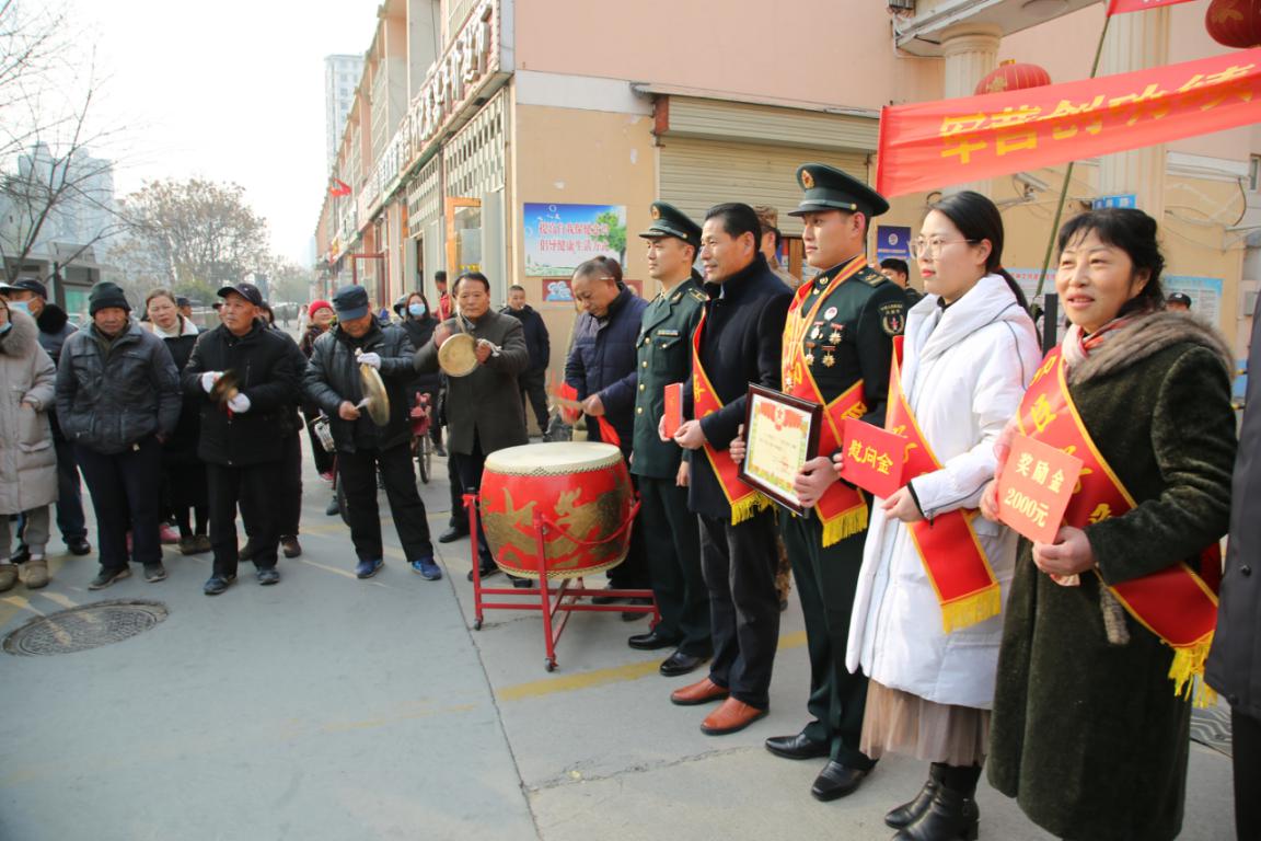 ????“沒(méi)想到人武部和雙擁辦這么重視,今天一大早,他們冒著嚴(yán)寒把兒子的立功喜報(bào)和慰問(wèn)金送上門,真叫俺全家人心里熱乎乎的”。這是江蘇省宿遷市宿城區(qū)鳳凰社區(qū)的戴翠云在同學(xué)群和朋友圈寫下的留言,同時(shí)一組為其送喜報(bào)熱鬧場(chǎng)面的圖片也得到了無(wú)數(shù)點(diǎn)贊和熱評(píng)。