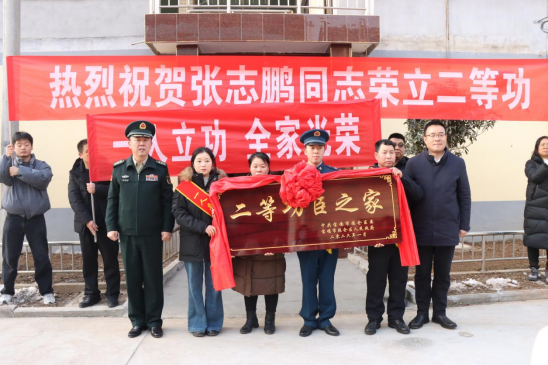 近日,陕西省宝鸡市陈仓区东关街道南阳村锣鼓喧天、热闹非凡,由陈仓区区委书记和区人武部部长等领导组成的送喜报小分队为辖区二等功臣张志鹏家人送上沉甸甸的二等功喜报和“二等功臣之家”牌匾。