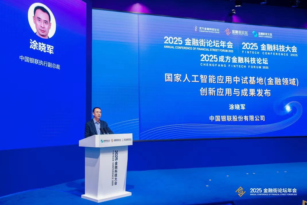 近日,2025金融街论坛年会金融科技大会——成方金融科技论坛在北京举行。中国银联执行副总裁涂晓军受邀出席论坛,代表中国银联与合作机构共同启动了国家人工智能应用中试基地(金融领域,以下简称“基地”)多项产业协同创新合作,并发布了基地2025创新应用与成果。